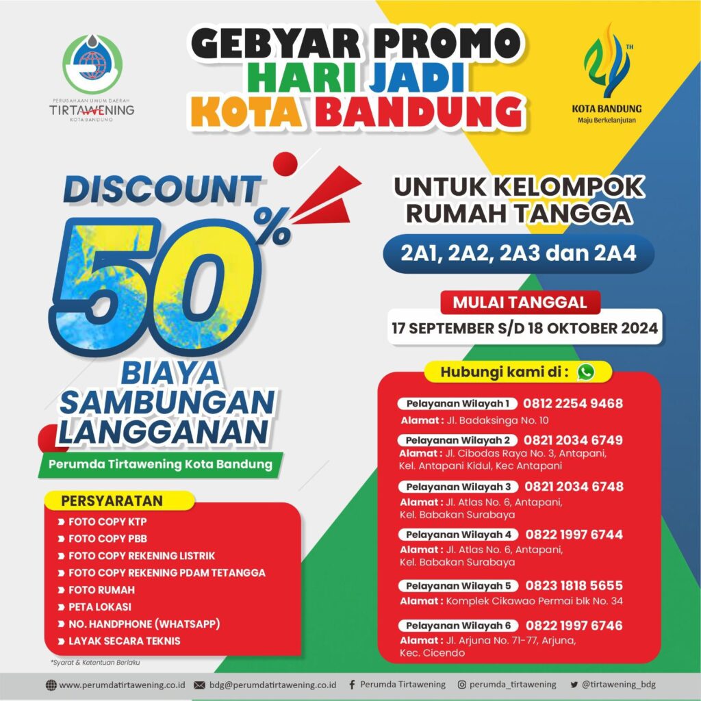 Bayar jadi lebih irit, mulai sekarang ga perlu khawatir lagi untuk mendaftar Sambungan langganan Perumda Tirtawening.